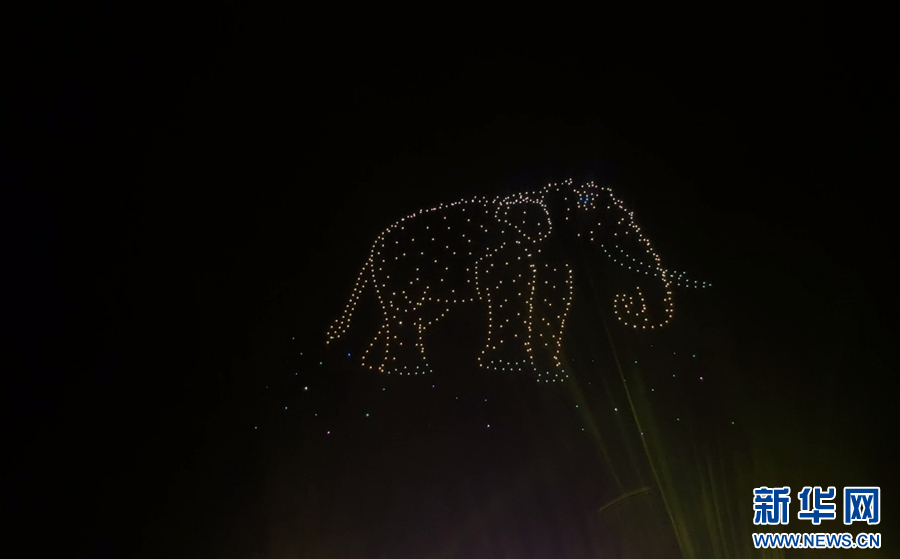 “澜·湄嘉年华”现场的无人机表演(10月3日摄)。新华网发(柴静 摄)pagebreak