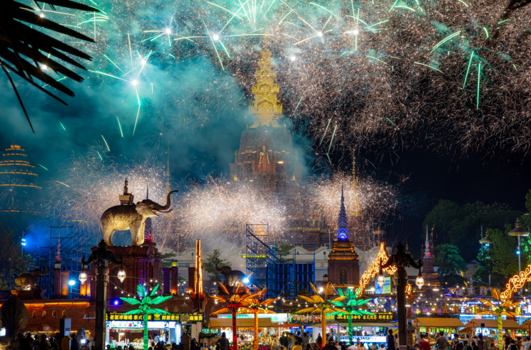 湄公河星光炫火嘉年华 (景洪发布 10月1日摄)