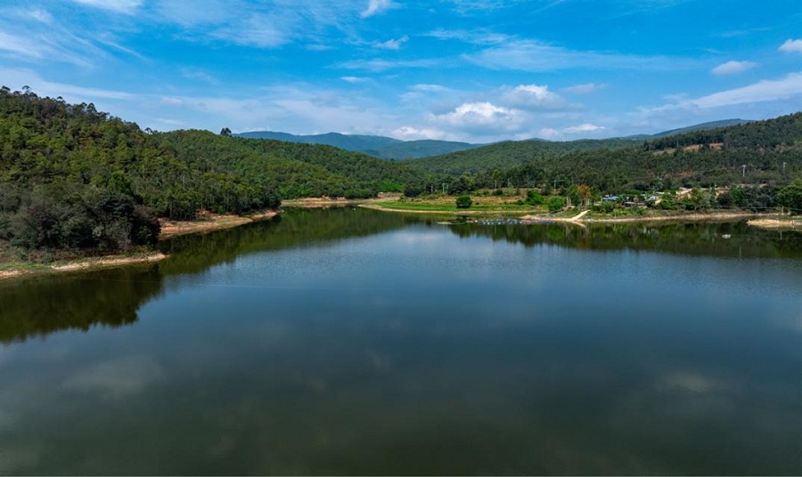 在云南省楚雄彝族自治州牟定县共和镇,丰乐水库像是一颗碧绿的翡翠镶嵌在共和镇军屯村委会的上游,每到耕种时节,一泓清流便从这里蜿蜒流出,流入下游的千亩良田,给乡亲们带来新的生机与希望。