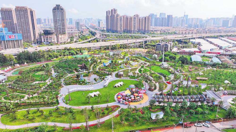 位于昆明市西山区明波路、明河路与杭瑞高速交会处的昆明市城市园林策展体验中心,为春城添绿增彩。记者 陈飞 摄
