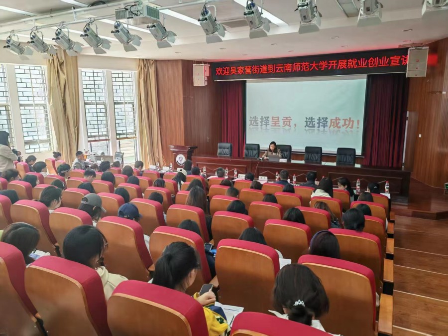 云南省数字经济开发区、呈贡区委组织部、吴家营街道等部门以及华为云南公司等企业走进云南师范大学开展就业创业宣讲(2025年4月3日摄)。