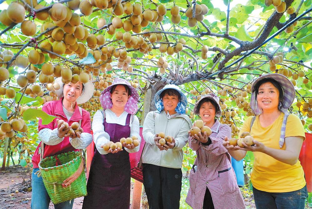 金秋时节,砚山县维摩乡倮可者村黄心猕猴桃种植基地内果香四溢,270余亩猕猴桃正值采收季,农户们穿梭果园,忙着摘果装箱,一派丰收图景。该基地不仅将猕猴桃远销至广州等地,还推出沉浸式入园采摘活动,吸引了众多游客前来体验田园乐趣。记者 黄鹏 通讯员 李文雄 摄