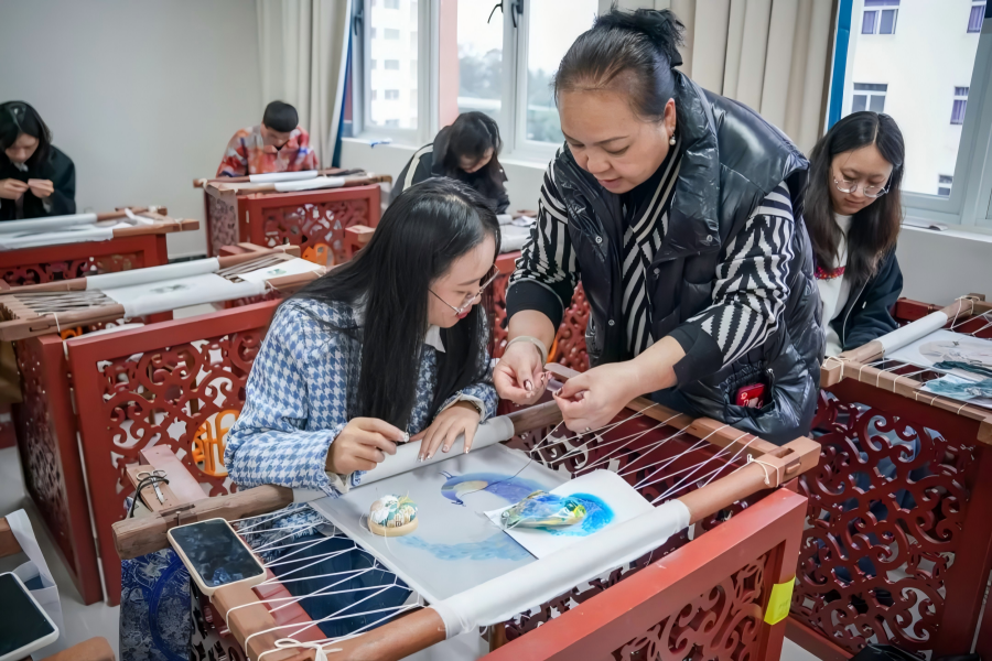 学生社区非遗刺绣扎染工作坊(资料图)。