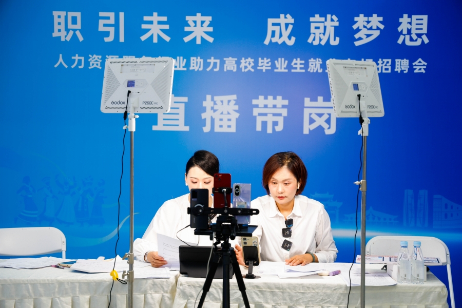 招聘会现场开展直播带岗活动(10月17日摄)。刘云 摄