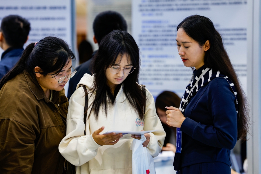 求职者与招聘人员交流沟通(10月17日摄)。刘云 摄