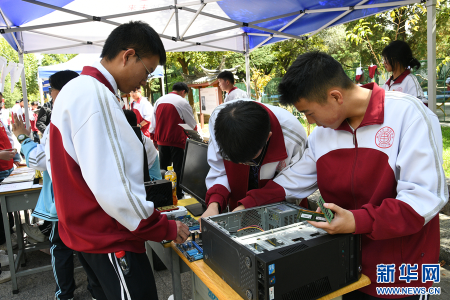丽江市一中校友返校参观交流(10月18日摄)。新华网发