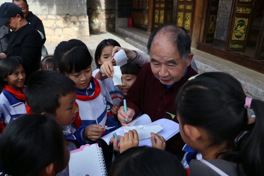 与会嘉宾在方国瑜小学进行访校活动(10月20日摄)。