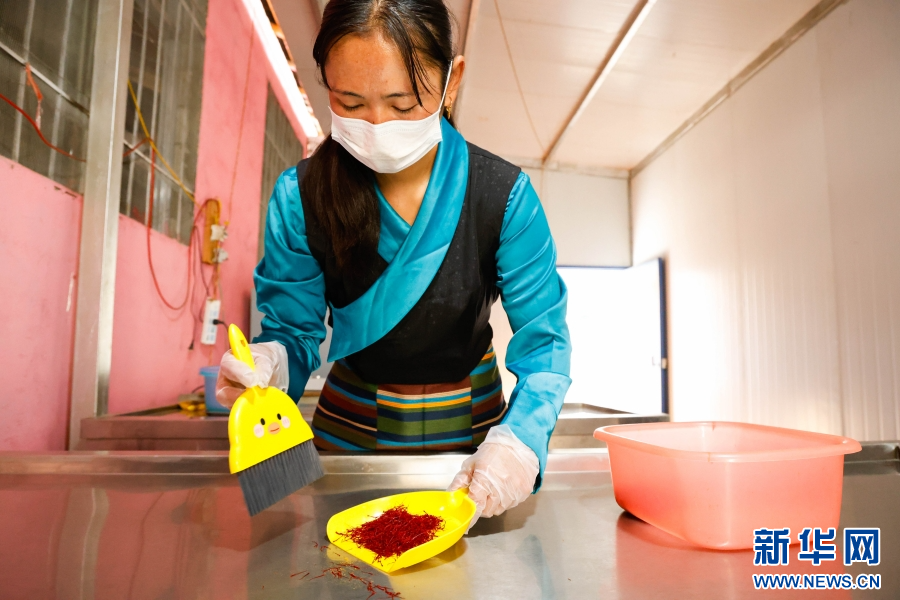 农户收集已经烘干的藏红花花丝(10月23日摄)。新华网发(刘云 摄)
