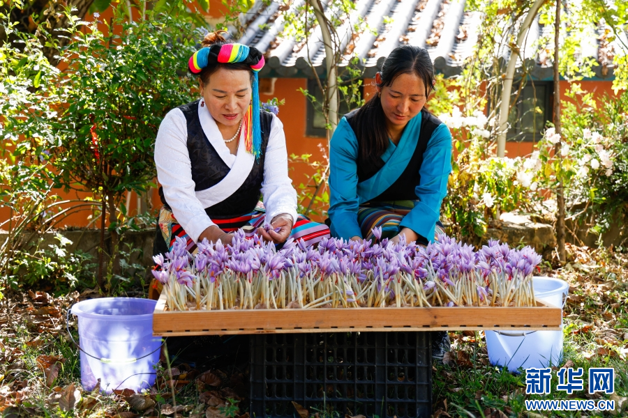 近日,循着花香来到云南省迪庆藏族自治州维西傈僳族自治县塔城镇其宗村,一朵朵红蓝相间的藏红花盛开在农户的花房里,这些小小花朵每年带动塔城镇400多户农户增收,年增收超千万元。