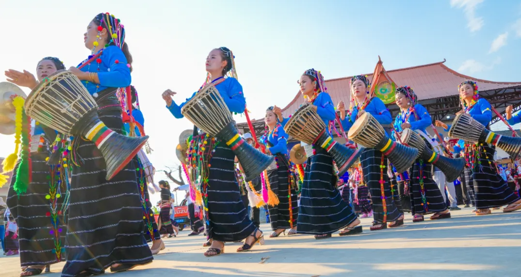 德宏是汉族、傣族、景颇族、阿昌族、傈僳族、德昂族等40多个民族世代共居的美丽家园,“十里不同风,百里不同俗”的多元文化并没有造成彼此隔阂,反倒交织成一曲温润的和声。傣族的柔美藏在剪纸流畅的线条里,景颇族的豪迈写在刀舞的抡转中,德昂族的古朴浸在手工织锦的经纬间,阿昌族的精巧凝于户撒刀的纹路里,傈僳族的热烈漾在三弦的挥弹间……这些文化从不是博物馆里的陈列,而是流淌在生活里的鲜活血脉。一年四季节庆和民族文化体验活动不停,目瑙纵歌节时,万人踩着统一步伐狂欢,再陌生的来客也会被热情拉进队列,跟着节奏感受团结的力量;泼水节来临,全城化作水的乐园,以水为礼,水花溅起的不仅是欢笑,更是不分你我的善意与接纳……