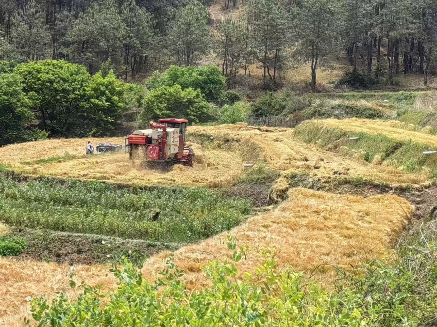 机械化收割前作大麦(5月6日摄)。姚康莹 摄