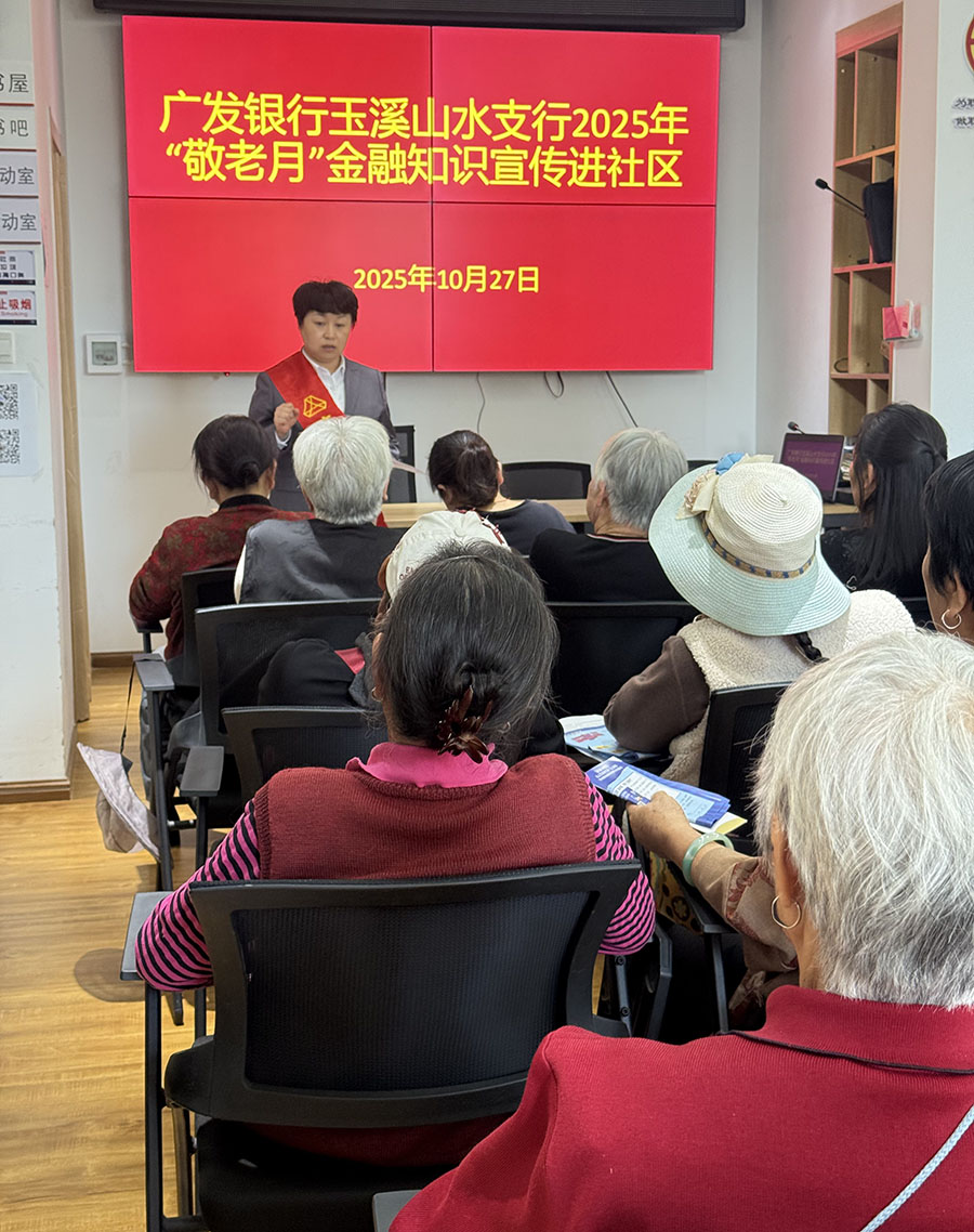 广发银行玉溪山水支行开展2025年“敬老月”金融知识宣传进社区活动(10月27日摄)。
