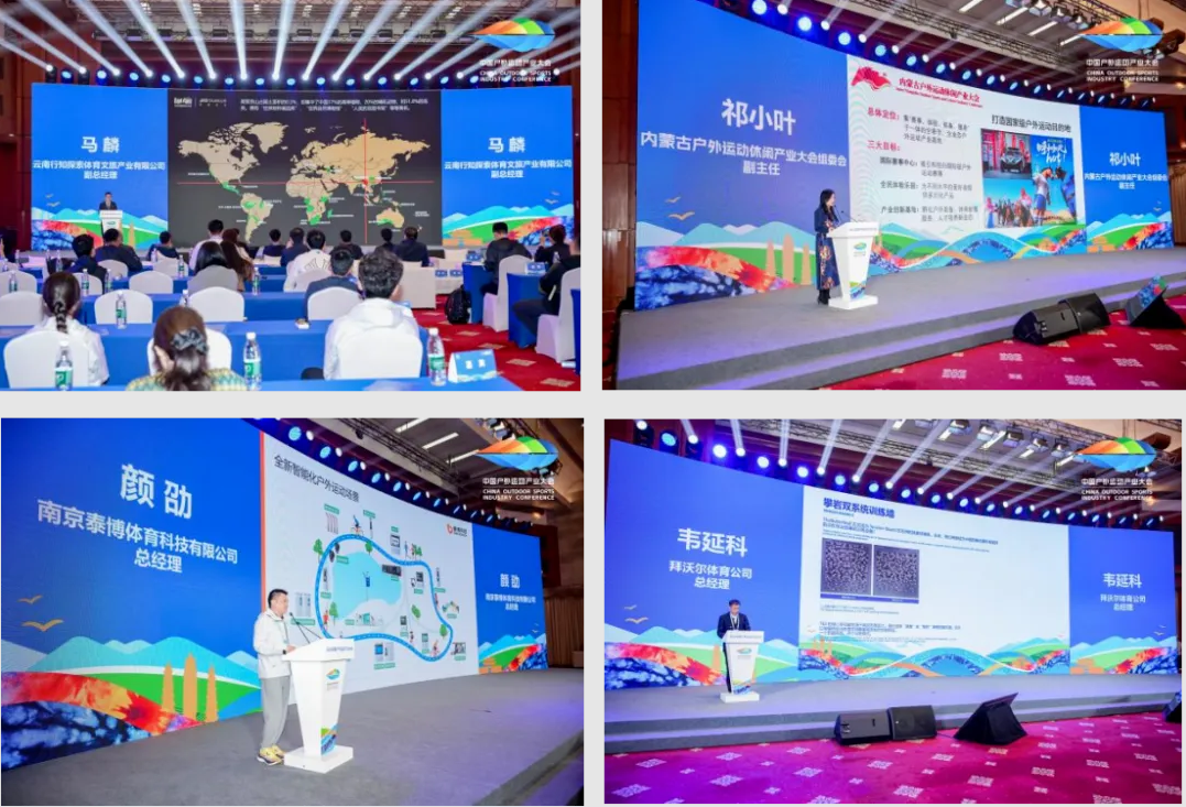 此外,云南行知探索体育文旅产业有限公司、内蒙古户外运动休闲产业大会组委会、南京泰博体育科技有限公司、拜沃尔体育公司分别介绍了“ECO—TRAIL生态越野”理念、内蒙古“全季节、全业态”户外资源、智慧赛道解决方案以及体育科技助力极限运动发展的创新实践。