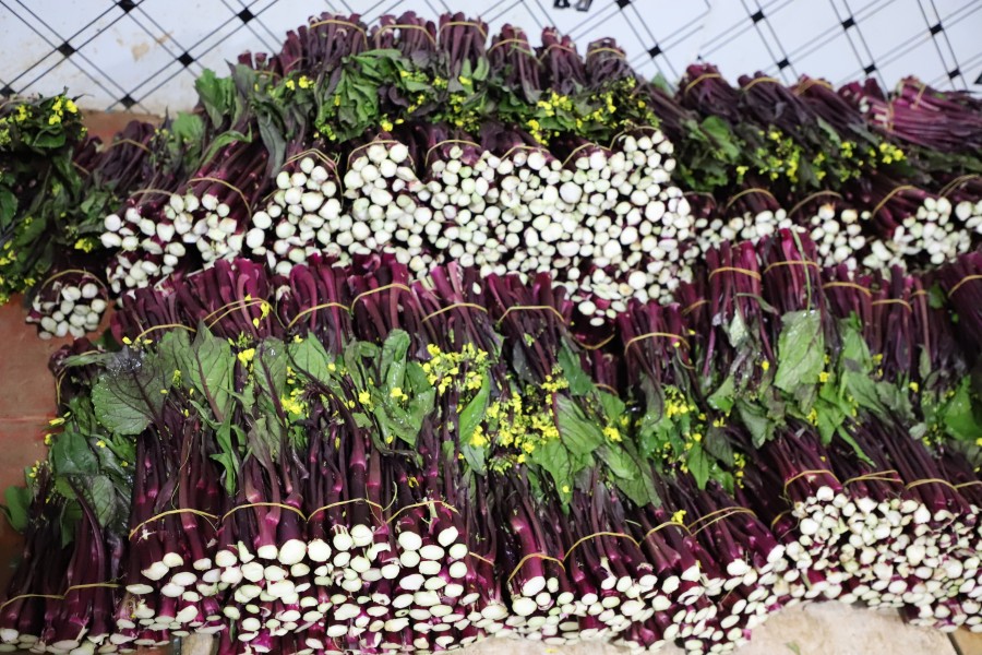此外,种植区还采用轮作模式:开始种植马铃薯,收获后接种红油菜,盘活了闲置土地资源。红油菜播种约40天即可采收,管理得当可连续采摘3个月,大大提高了土地利用效率。目前,马树镇的红油菜主要销往湖北、湖南、上海、广州、四川等地,凭借反季优势和绿色品质,马树镇的红油菜打开了稳定销路。