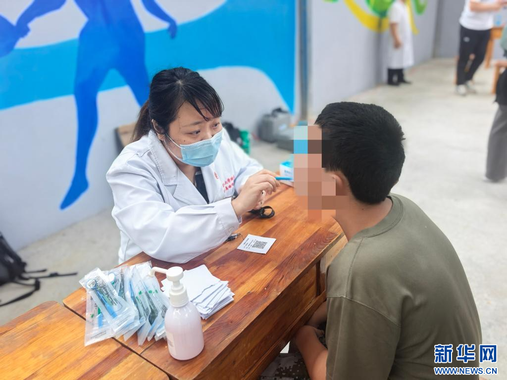 口腔科专家在义诊现场为当地学生做口腔检查。新华社记者 李恒 摄