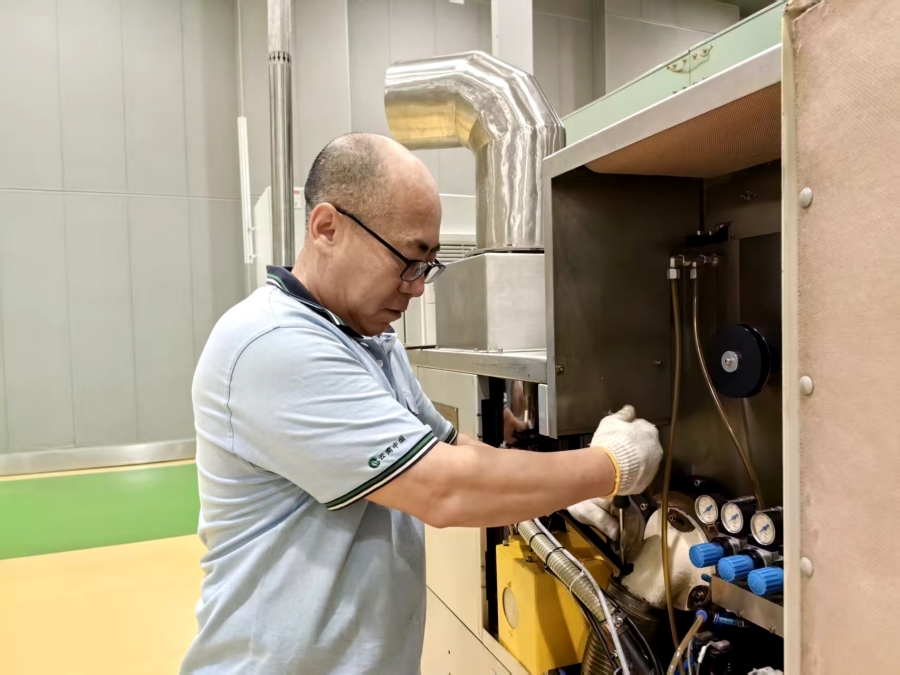 齐红伟正在维修成型机(资料图)。孙嘉雯 摄