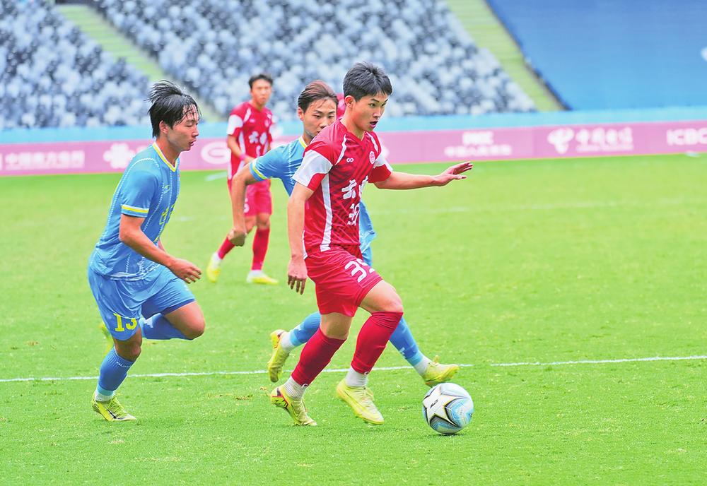 云南队球员(红方)在十五运会U20男足比赛中。 云南省体育局供图