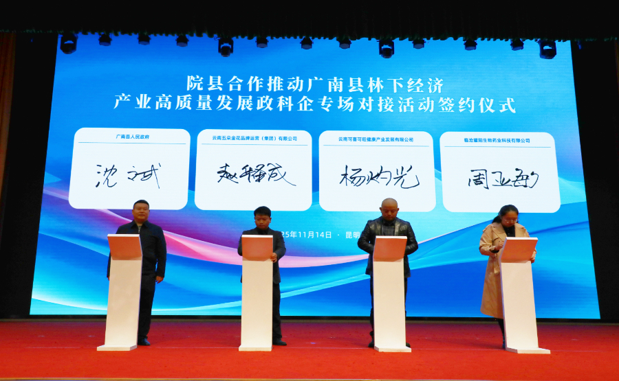 11月14日,云南省农业科学院与文山壮族苗族自治州广南县联合举办林下经济产业高质量发展政科企专场对接活动,深化院地合作,共促乡村振兴。多年来,云南省农业科学院持续深耕广南县农业产业,以科技为翼,助力当地破解发展瓶颈,在八宝米、油茶、林下中药材等领域取得显著成效,推动广南县农特产业从“大而不强”向“优质高效”跨越。