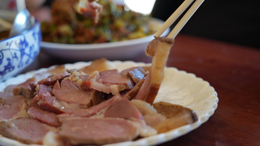 餐桌上的老窝火腿(11月10日摄)。