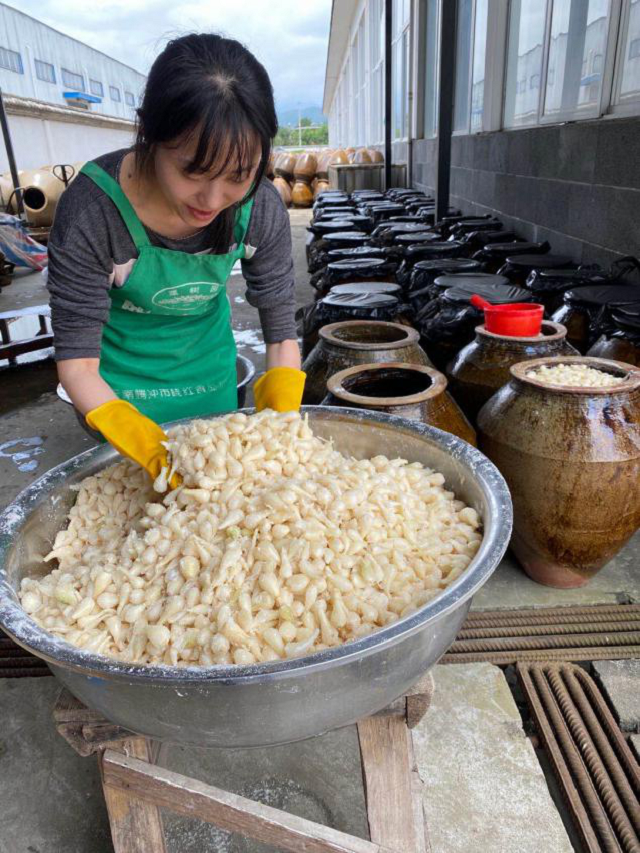 史巧在企业进行藠头腌渍实验(2020年5月18日摄)。