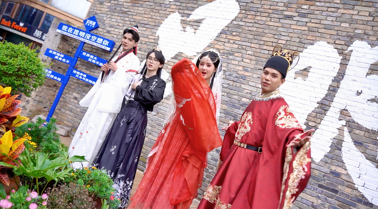 步入昆明老街,青石板路与飞檐翘角瞬间将时光拉回往昔。拥有120余万粉丝的老挝博主Parn对着琳琅满目的明制汉服与战国袍兴奋不已,陷入了甜蜜的“选择困难”:“每一套都太美了,我都想试!”而拥有60多万粉丝的Thip,在完成精致妆造后,立刻化身“古装偶像剧主角”,手机拍个不停,迫不及待地通过社交媒体展示华服魅力。