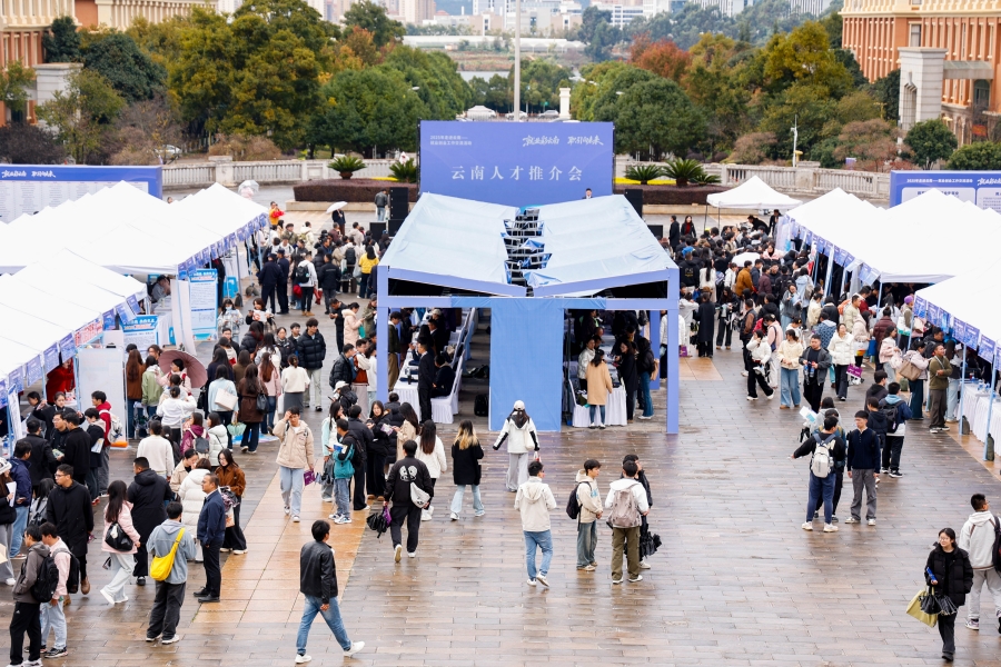 人才双选会在云南大学文典广场举行(11月18日摄)。