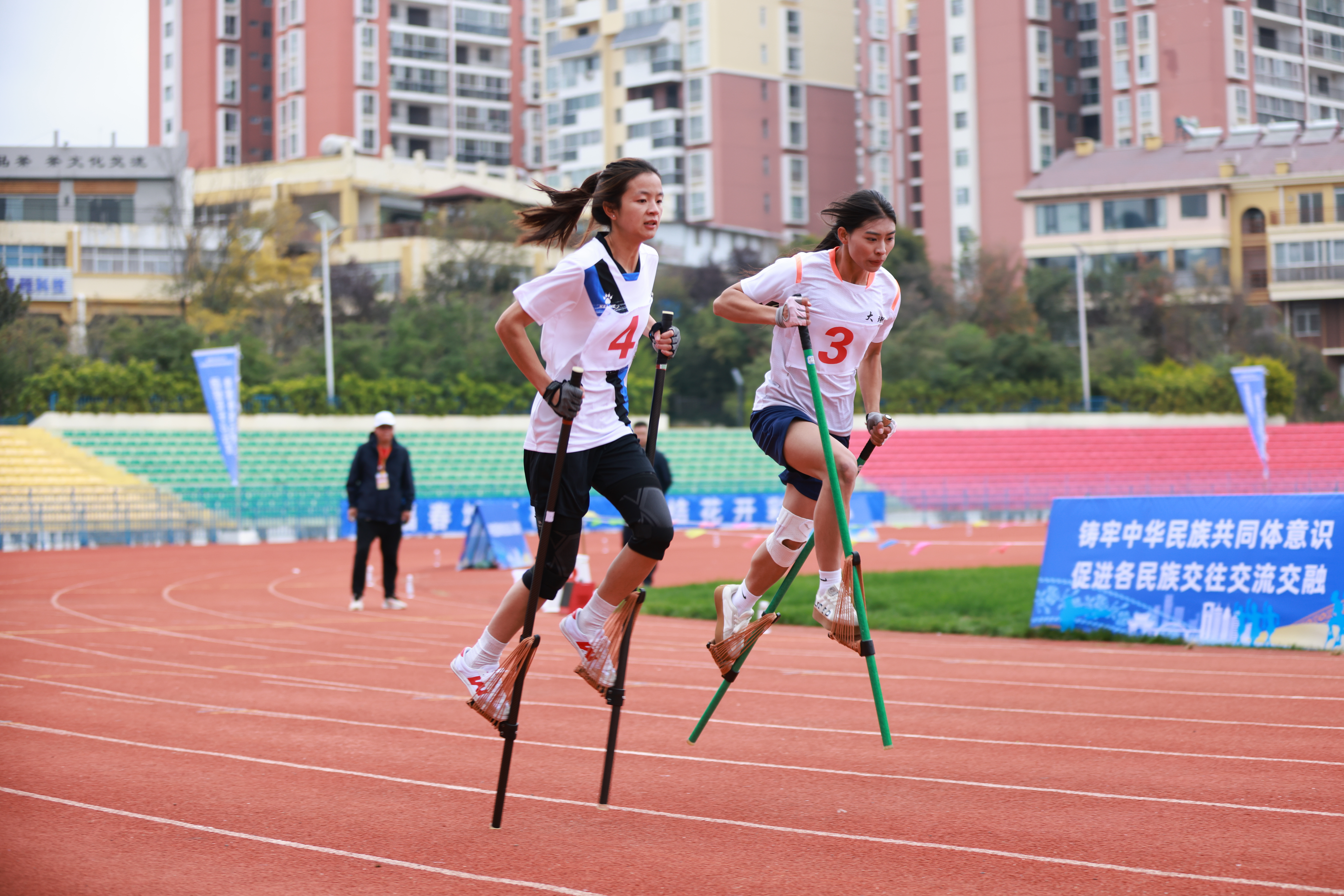 高脚竞速比赛(11月18日摄)。
