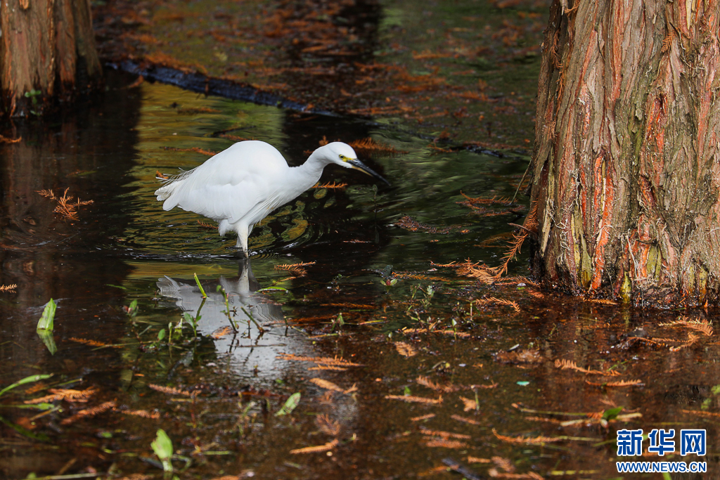 栖息在湿地的鸟类(11月15日摄)。新华网发(郑益 摄)
