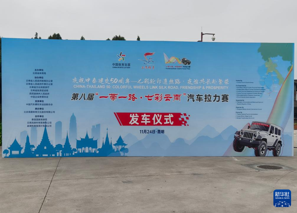 24日上午,第八届“一带一路·七彩云南”汽车拉力赛中方车队在昆明发车启程。在19天行程中,车队将行进约4000公里,途经老挝、泰国,并于西双版纳收车。