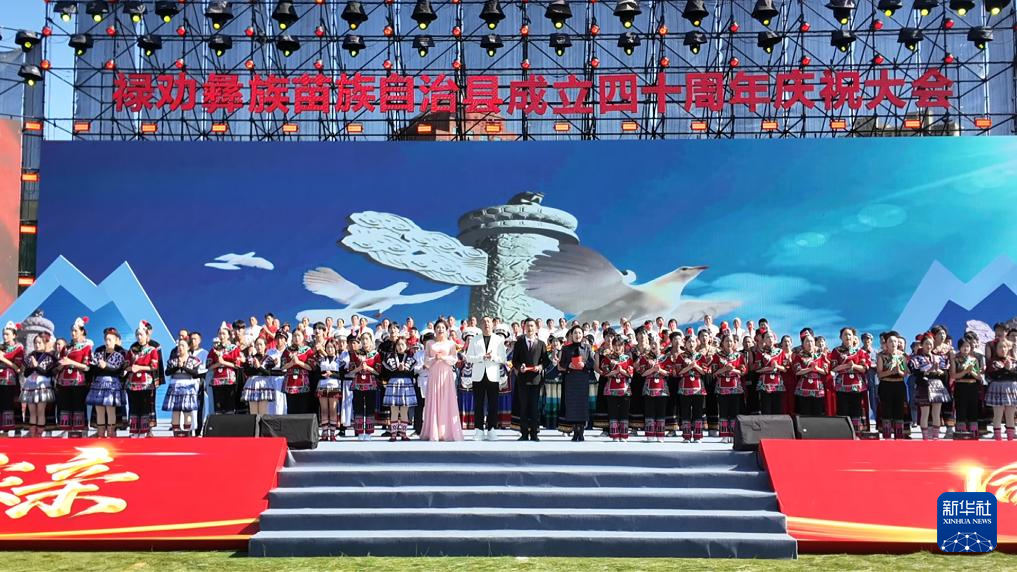 11月25日,云南省昆明市禄劝彝族苗族自治县成立40周年庆祝大会在禄劝县体育场举行。庆祝大会上,当地各族群众欢聚一堂,载歌载舞为家乡送上祝福。