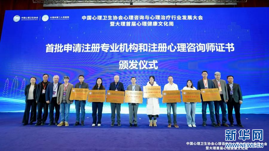 会上,相关负责人为首批申请注册的专业机构和注册心理咨询师颁发证书。此外,当天还在爱上大理廊道时光营地设立了心理集市,开展心理专家义诊、手工作业疗愈体验、相关物理治疗设备体验及心理健康服务体验项目,让心理健康的种子,在这片苍洱沃土上生根发芽。