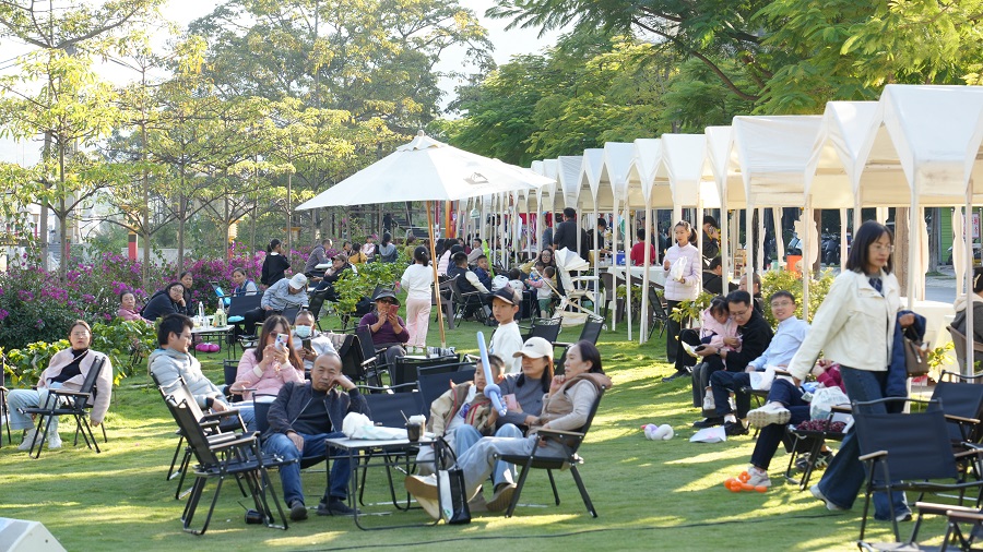 草果“楽”市集位于布莱恩咖啡庄园旁,趁着周末,许多市民带着孩子前来体验丰富的游园活动,投壶、扔沙包、套圈等活动吸引了不少家长和孩子。烟火气十足的市集,迎来每天1500人次的客流量。