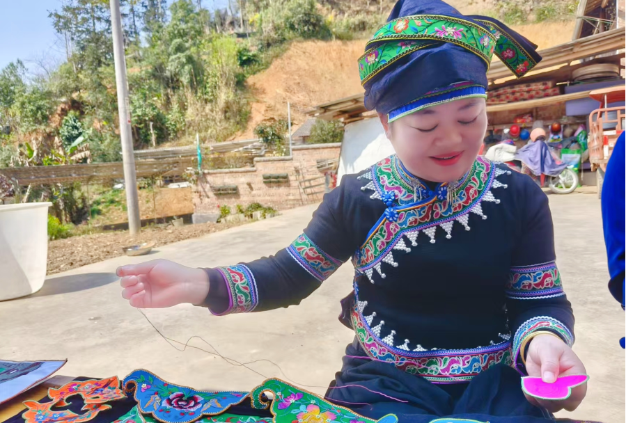 卿三华是“好益便利店”的店主,同时也是当地绣娘团队的一员,无论是精美的荷包、实用的背带,还是雅致的头帕,各类刺绣技术皆不在话下。