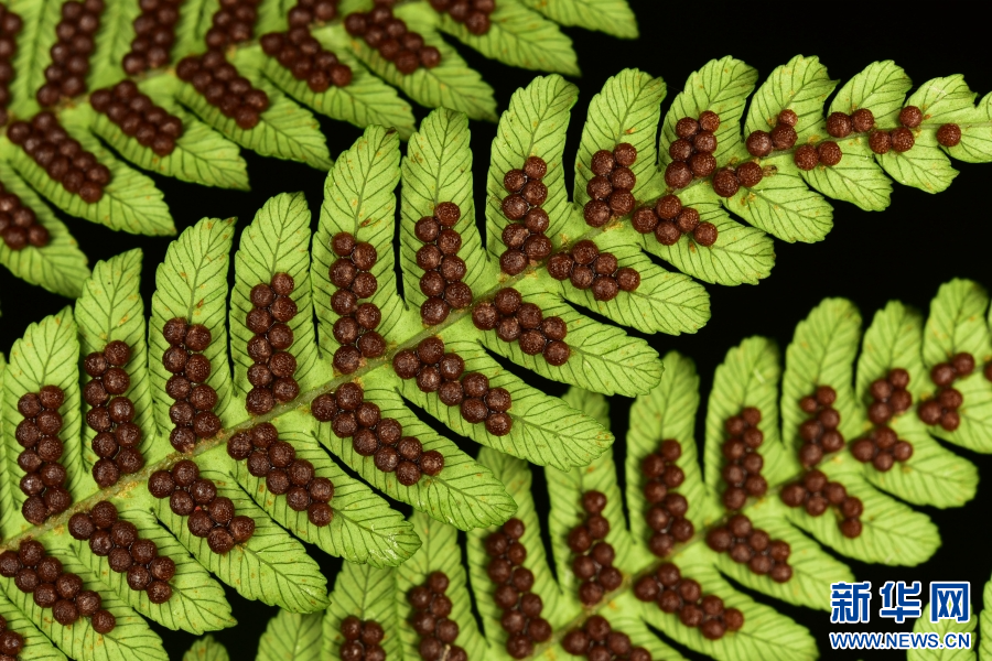 桫椤叶背上的孢子囊群(11月29日摄)。新华网发(郁云江 摄)