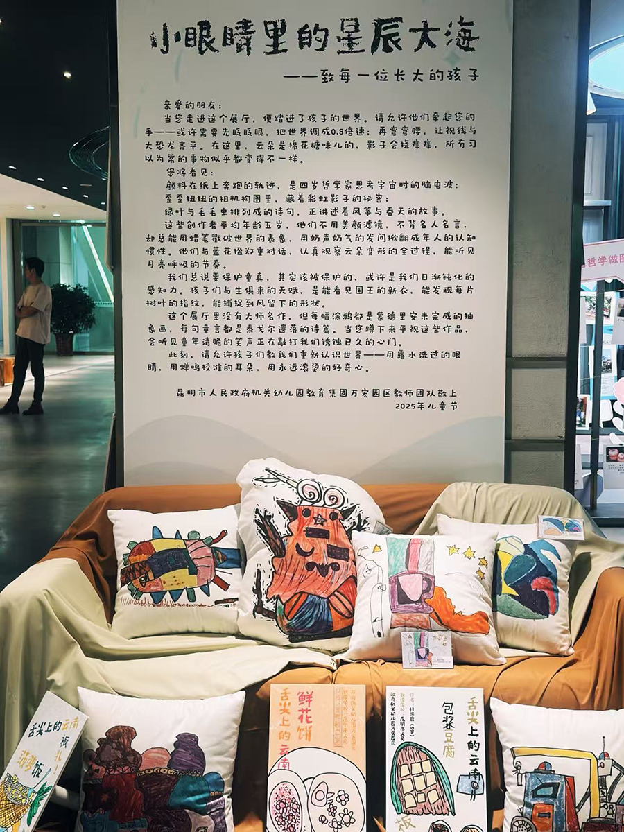 12月1日,社区里举办了一场童年看世界的儿童作品展,让邻里大人们看见童心与世界对话的独特方式。昆明市人民政府机关幼儿园教育集团 供图