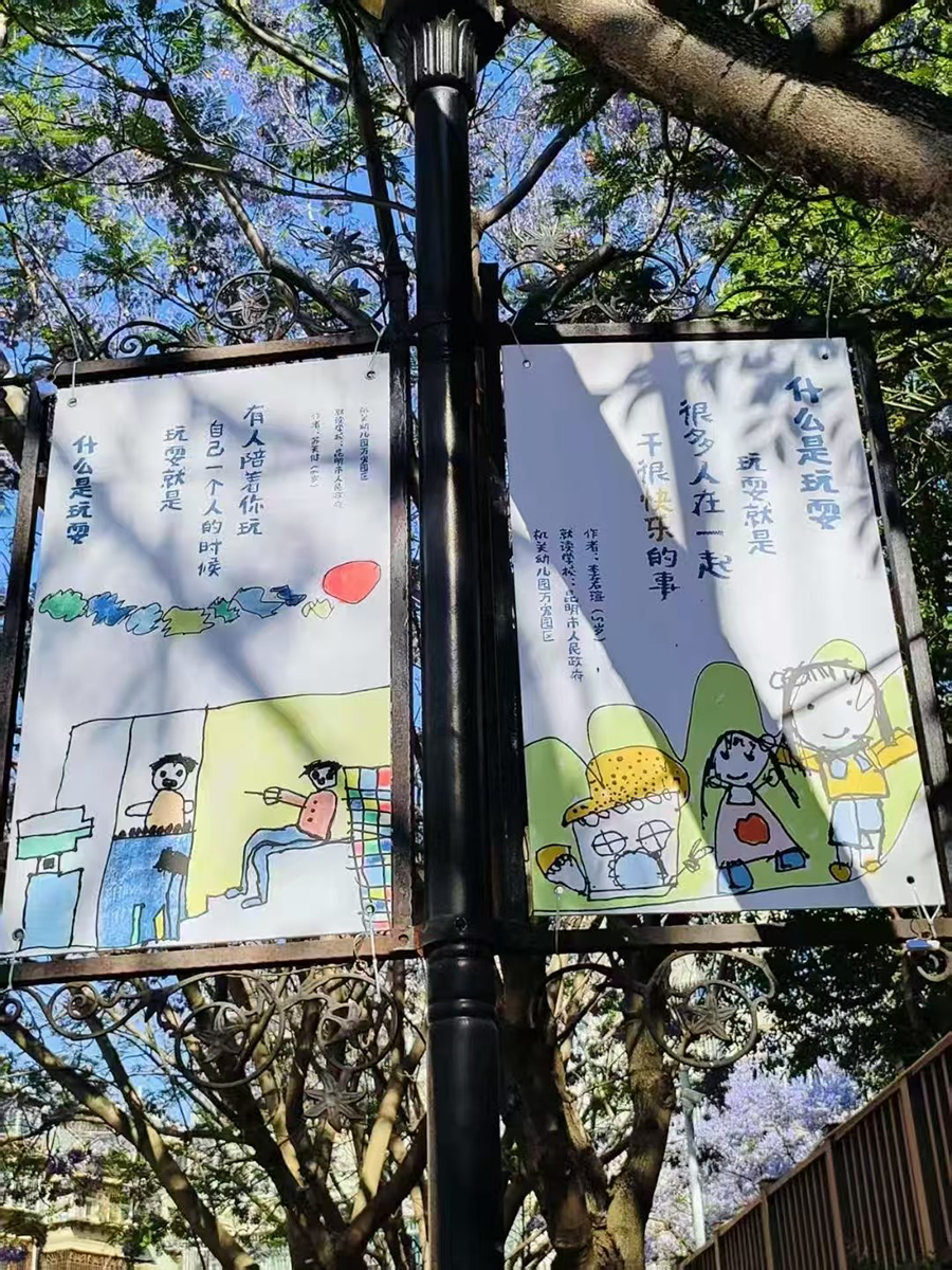 12月1日,一幅幅由孩子绘制的云南风情画亮相联盟街道街头灯牌,成为连接课堂与生活,童年与城市的一道风景。昆明市人民政府机关幼儿园教育集团 供图