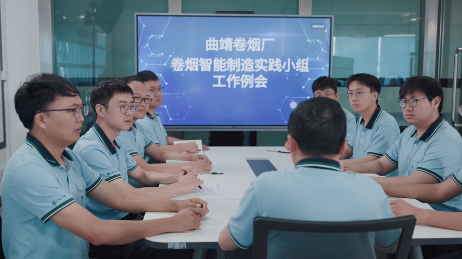 曲靖卷烟厂“AI+卷烟制造”工作小组召开工作例会(资料图)。林勇 摄