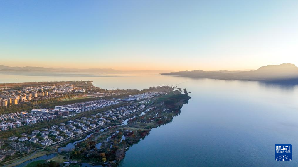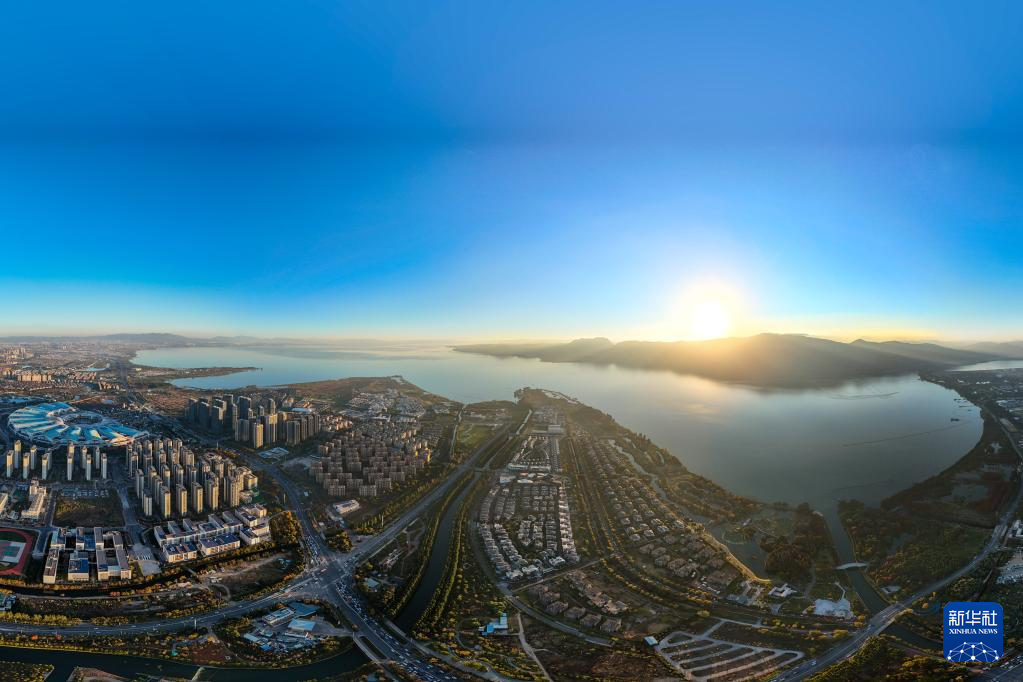 12月10日拍摄的滇池一景(无人机全景照片)。新华社记者 彭奕凯 摄