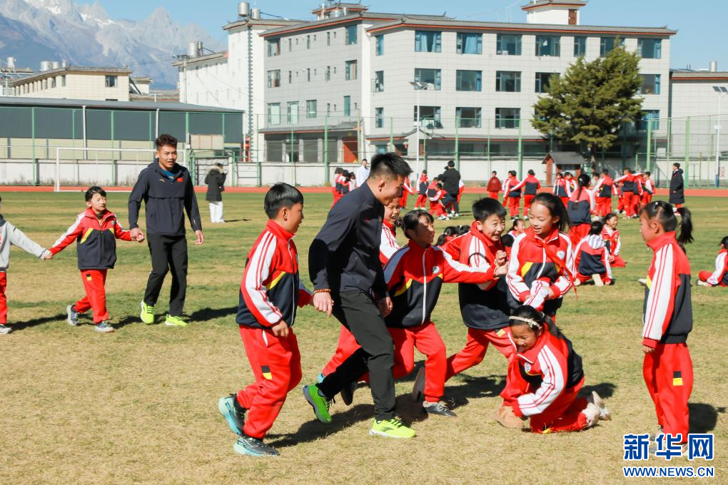 运动员们走进校园与孩子们游戏。(主办方供图)