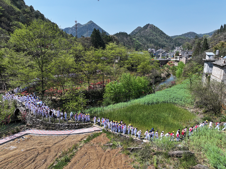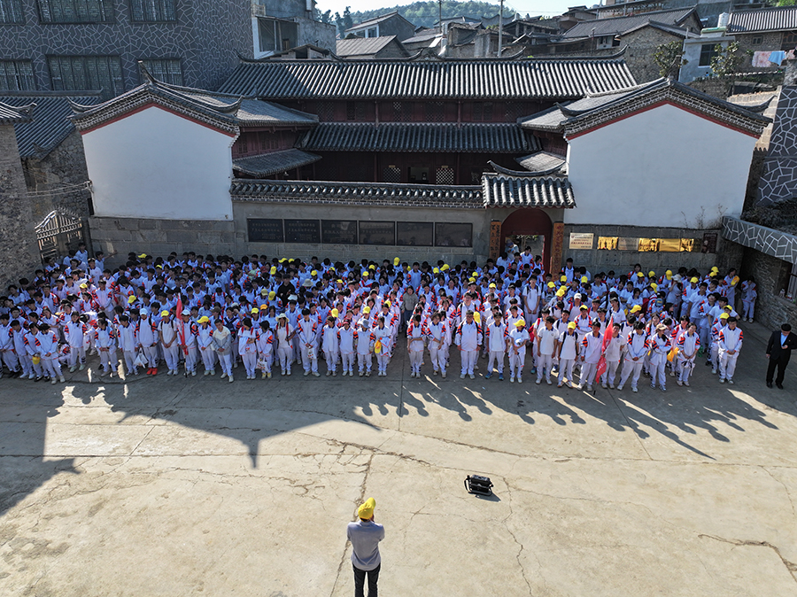 曲靖市罗平县八壹高级中学组织全校师生到罗平县钟山乡开展红色主题教育活动(3月26日摄)。朱江伟 摄