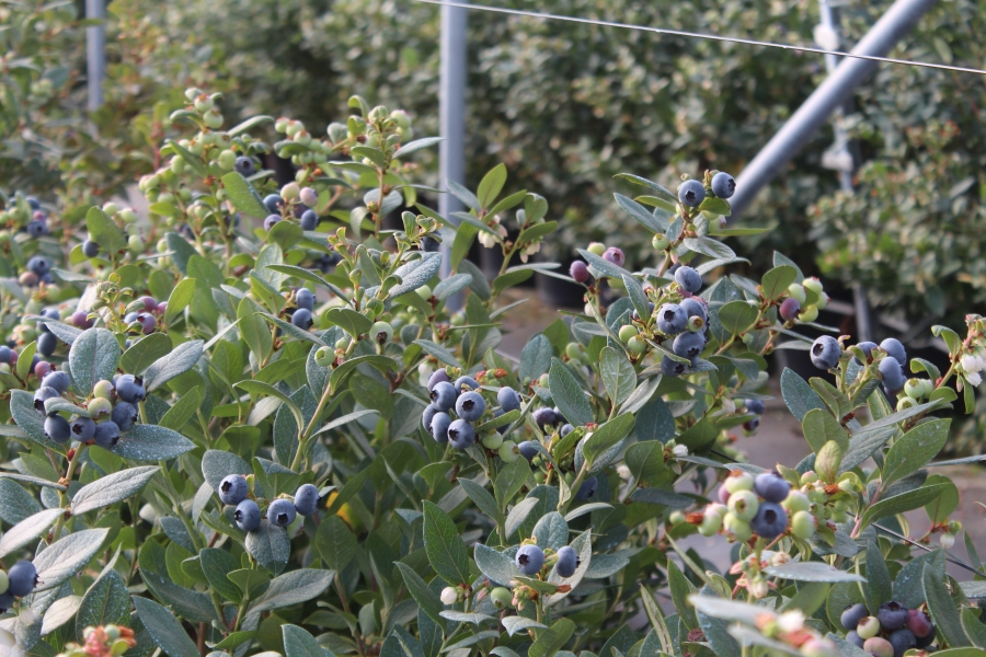 三川镇现代化蓝莓种植科技示范基地里即将成熟的蓝莓(12月18日摄)。