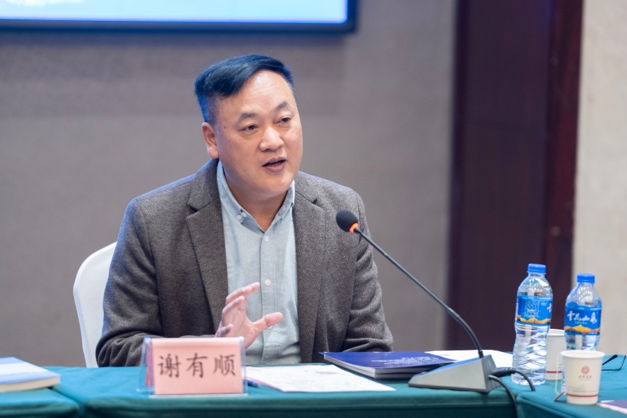 广东省作家协会主席、中山大学中文系教授谢有顺主持会议(12月18日摄)。