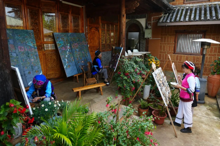 位于大理洱海边的伙山村“农民画社”。郝亚鑫 摄