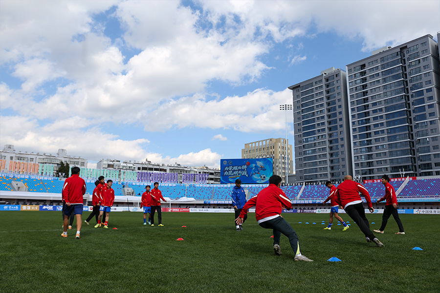目前,各方工作人员正在昆明体育中心体育场为次日的比赛作准备。据悉,昆明体育中心体育场在今年升级了球场草地、灯光效果、观众看台座椅及休息室配套等,助力比赛双方发挥更好水平。(完)