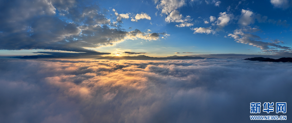 阳光照耀下的云海及群山(12月23日摄)。新华网发(刘东 摄)