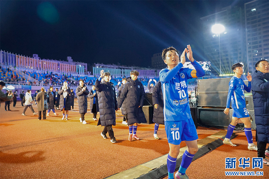 昆明队队员赛后感谢球迷支持(12月27日摄)。新华网发(杨桢宇 摄)