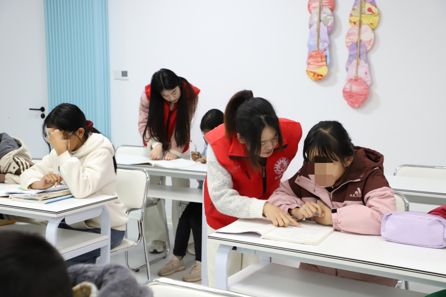 志愿者辅导孩子们做作业(12月24日摄)。张顺富 摄