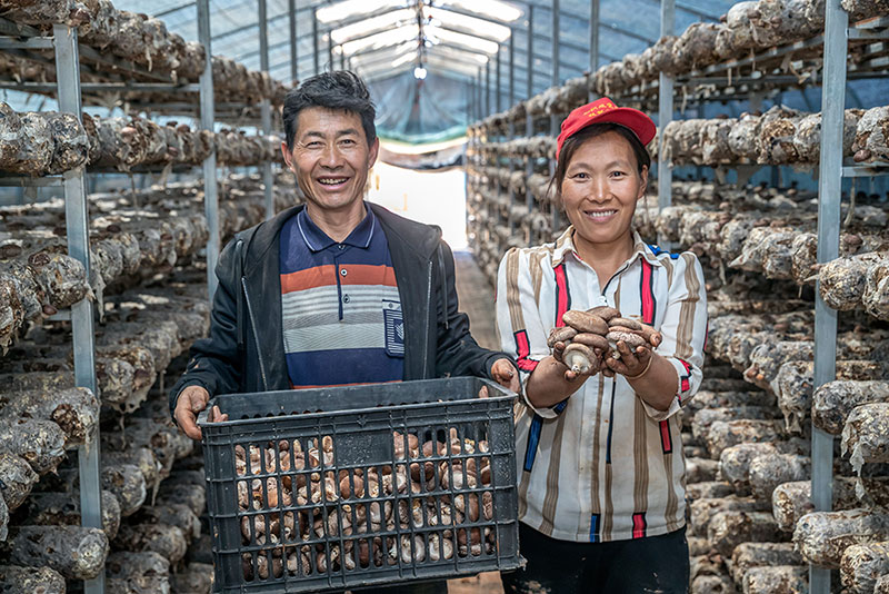 搬迁群众通过承包食用菌基地大棚增收。砚池街道供图