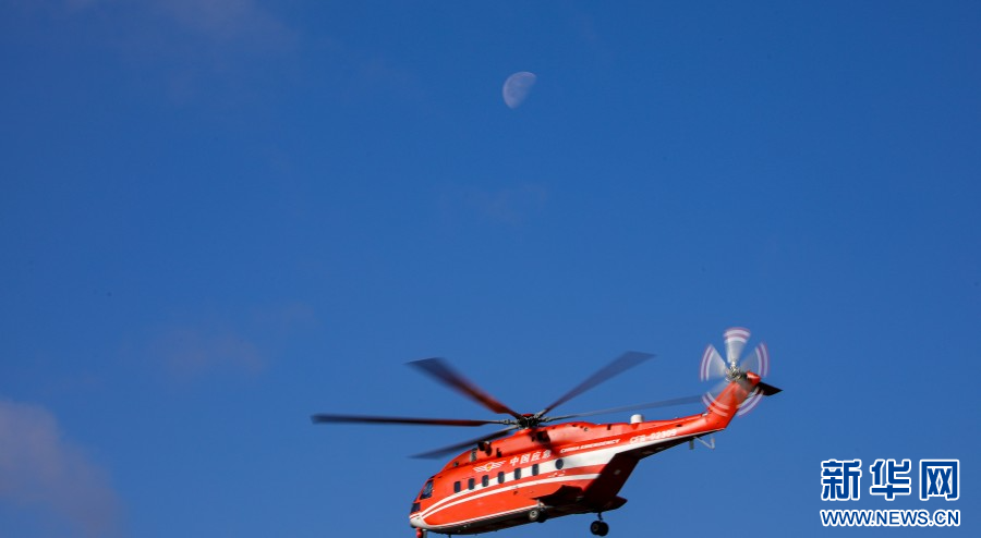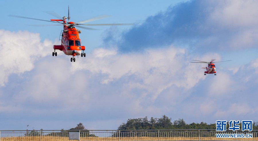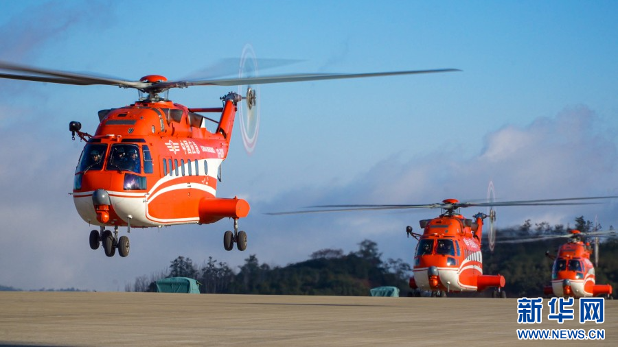 三架直升机依次起飞(1月9日摄)。新华网发(骆银文 摄)