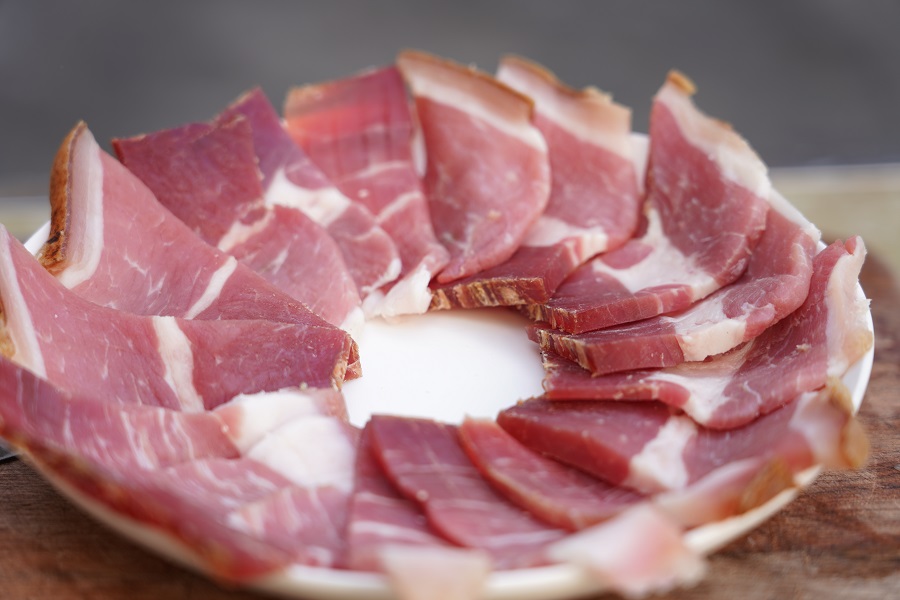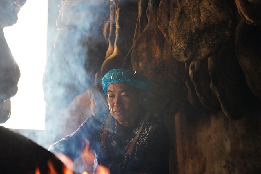 老窝火腿腌制工序繁杂考究,从选腿、修腿、洒酒、上盐、揉腿,到悬挂风干、烟熏烘烤、发酵陈化,每一步都凝聚着匠心。2022年12月,老窝火腿制作技艺成功入选云南省非物质文化遗产代表性项目名录;2025年,杨李忠的“匠珍火腿”作坊成功申报为泸水市第二批非遗工坊,成为传承非遗技艺、带动群众增收的重要平台。